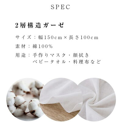 ダブルガーゼ 生地 マスク用 1m 幅150cm×100cm 綿100% コットン 繰り返し使える 洗える 2重ガーゼ DIY 大人用 子ども用 裁縫 ハンドメイド 手作りキット 無地 白 コットン 送料無料 【ms-h003】【予約販売:5月8日入荷予定順次発送】【送料無料】メ込